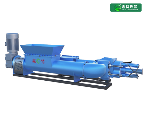 占地面積小,輸送量大,輸送效率高:該設備采用強制喂料螺旋作為該輸送泵的進料方式,可保證輸料泵缸體每次動作,輸料泵管道內(nèi)都有充足的餐廚垃圾等物料,相同設備體積下輸送量幾乎是單缸式餐廚垃圾輸料泵的兩倍,